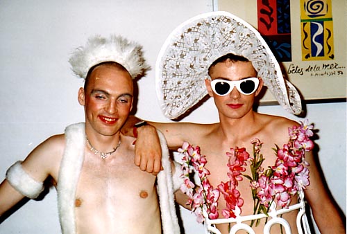 At about the same time all of this was going on, a club called Kinky Gerlinky was in its ascendancy. Created and run by a straight couple, Michael and Gerlinda, this was an approximately-monthly exercise in mixed-gay outrageousness. There were straightforward drag queens aplenty, but also lots of people who would dress up in ridiculous ways and make complete twats of themselves -- of ourselves -- because it was fun to do so, and the occasion provided an excuse. The first time I went, not alone, I was pretty scared. But I had a great night, mostly spent making out with a lovely boy called Martin who I'd known in the OutRage! days, who came the instant I fucked him. And I went to pretty much every one after that.