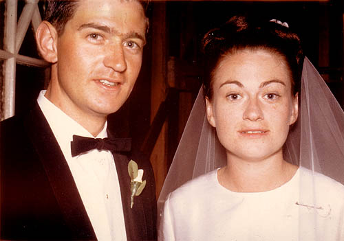 It was a Catholic wedding, and my mother is in white. There are things we just never think -- or, perhaps, dare -- to ask, but looking at pictures like this, how can one fail to wonder? Did they do it by the book? Are they on their way to a fumbling first sexual experience? Given Peter's eventual sexuality, had he fooled around with boys before this? What was their courtship like? How did any of it ever happen at all?
